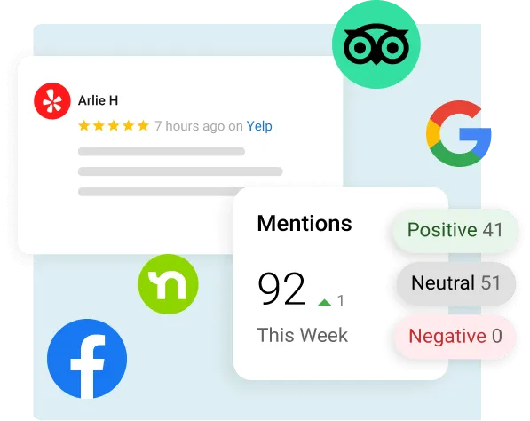 Monitor all of your reviews and ratings on Google, Facebook, Yelp, Nextdoor and TripAdvisor in one central place.